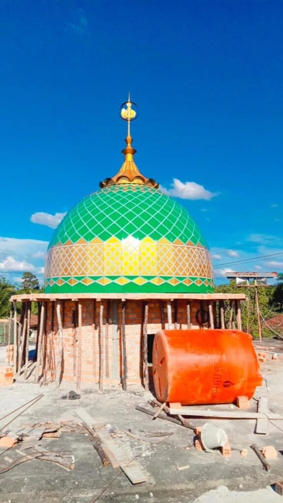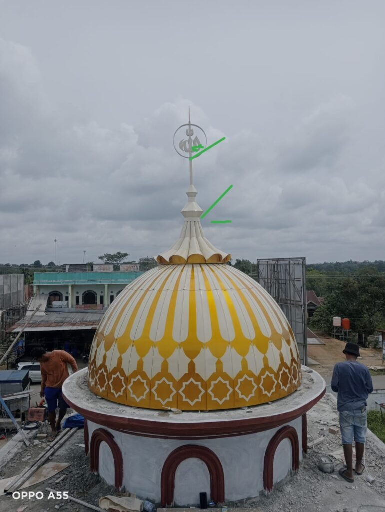 Kubah dengan sentuhan artistik dan detail ornamen kaligrafi. Didesain khusus untuk masjid, musholla, atau bangunan islami yang ingin menghadirkan keindahan seni sekaligus nuansa islami yang kuat.